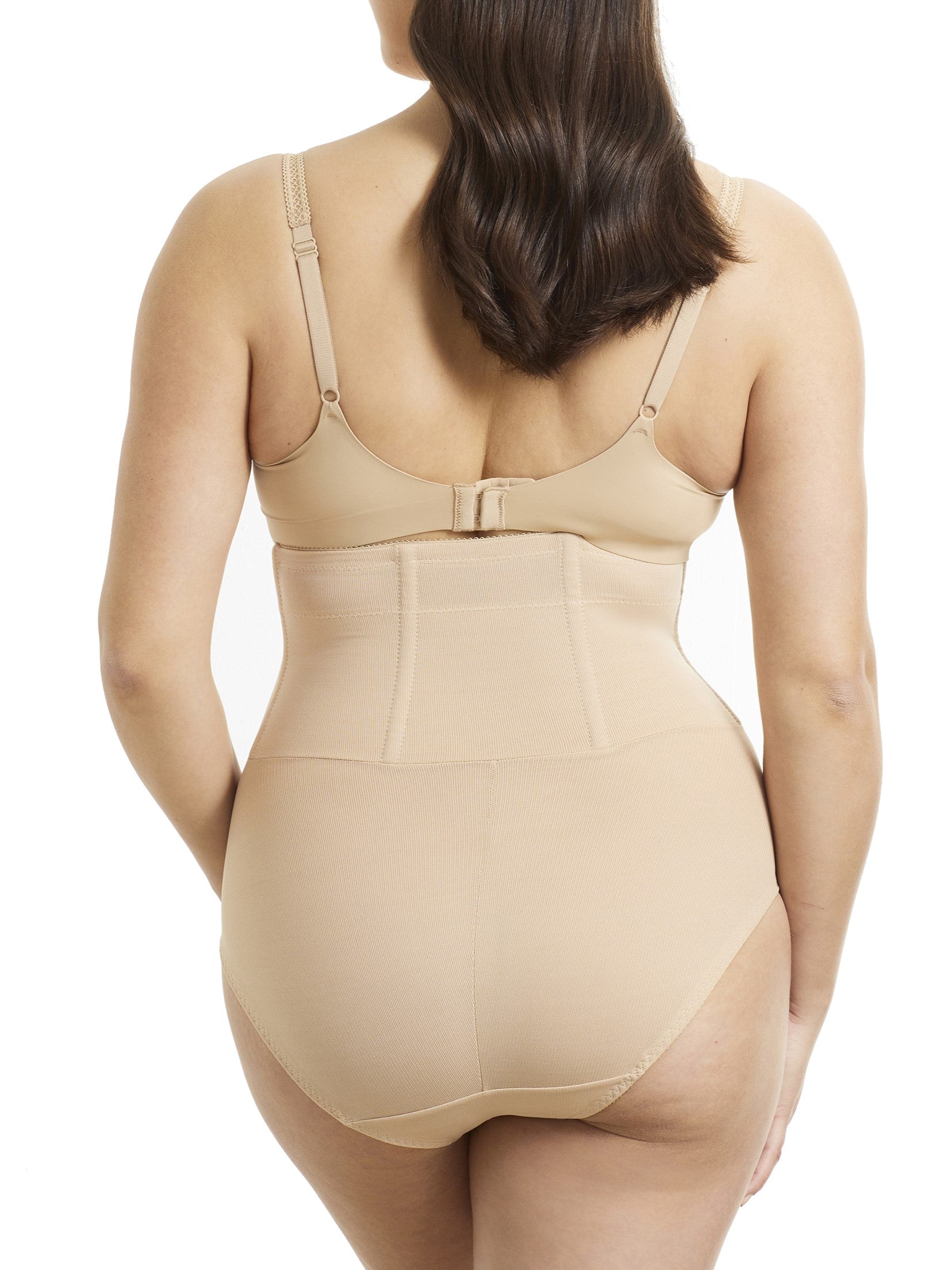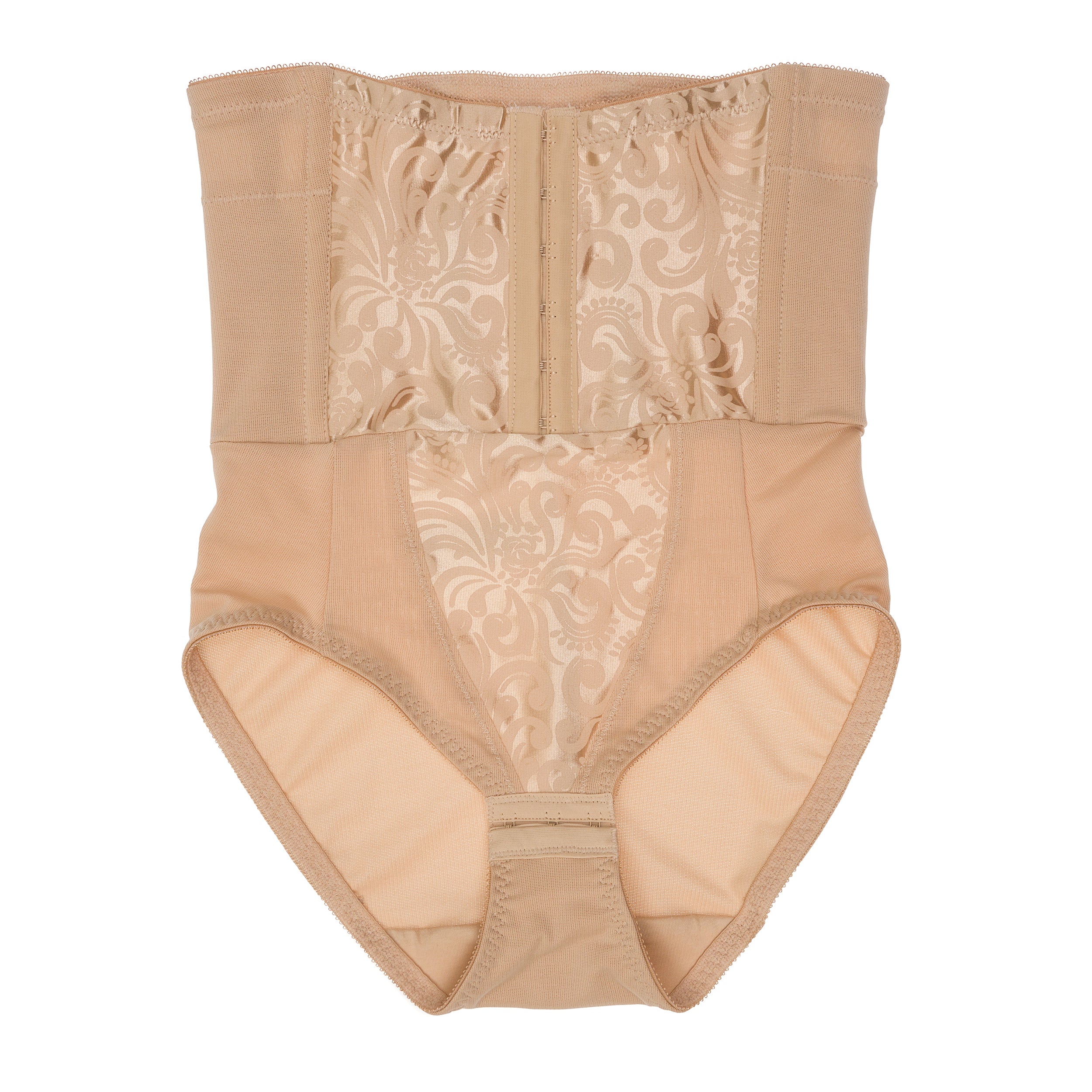 - Built-in waist cincher: This high-waist shaping brief, with hook-and-eye front closure and flexible boning around the waist, offers exceptional waist slimming control and promotes good posture.